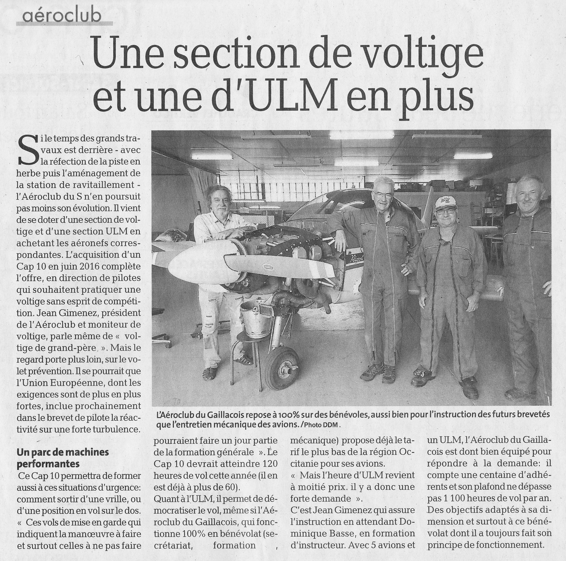 LA DÉPÊCHE DU DIMANCHE 30 juillet 2017, article consacré aux sections voltige et ULM de aéro-club.