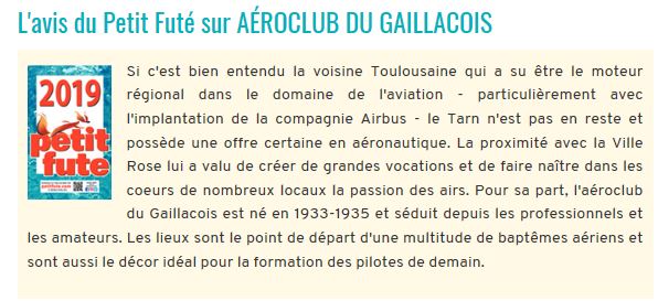 LE PETIT FUTE 2019, l’avis du Petit Futé sur l’aéro-club.