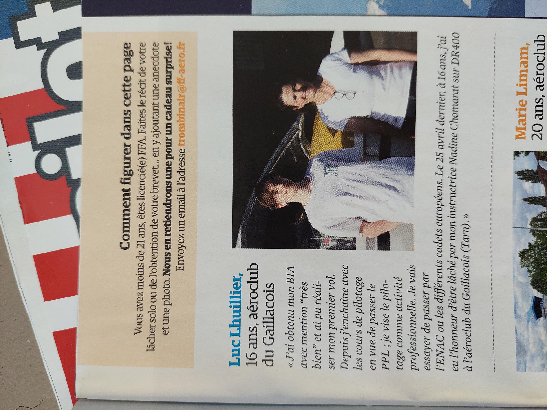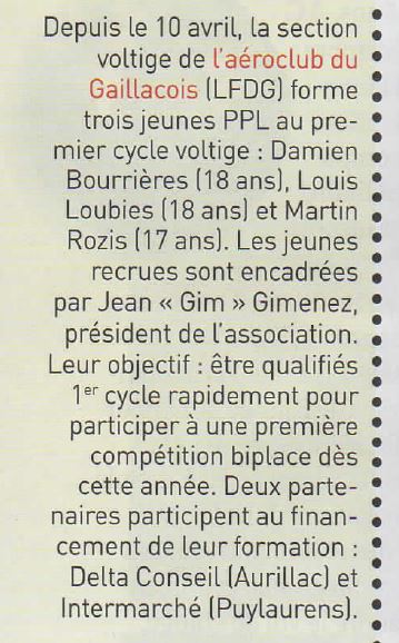 INFO PILOTE Juin 2017, article consacré à la section voltige de l’aéroclub (zoom sur l’article).